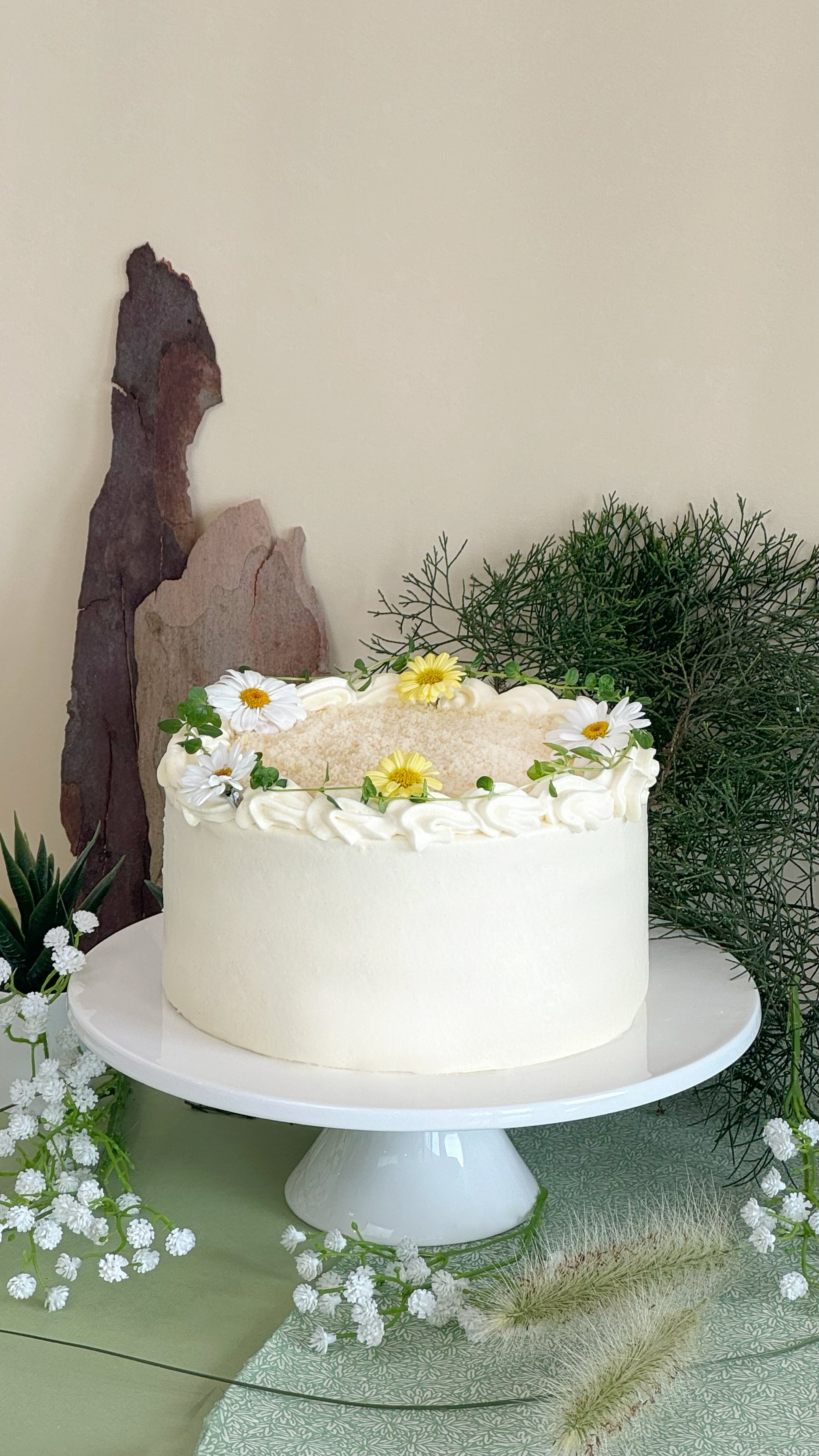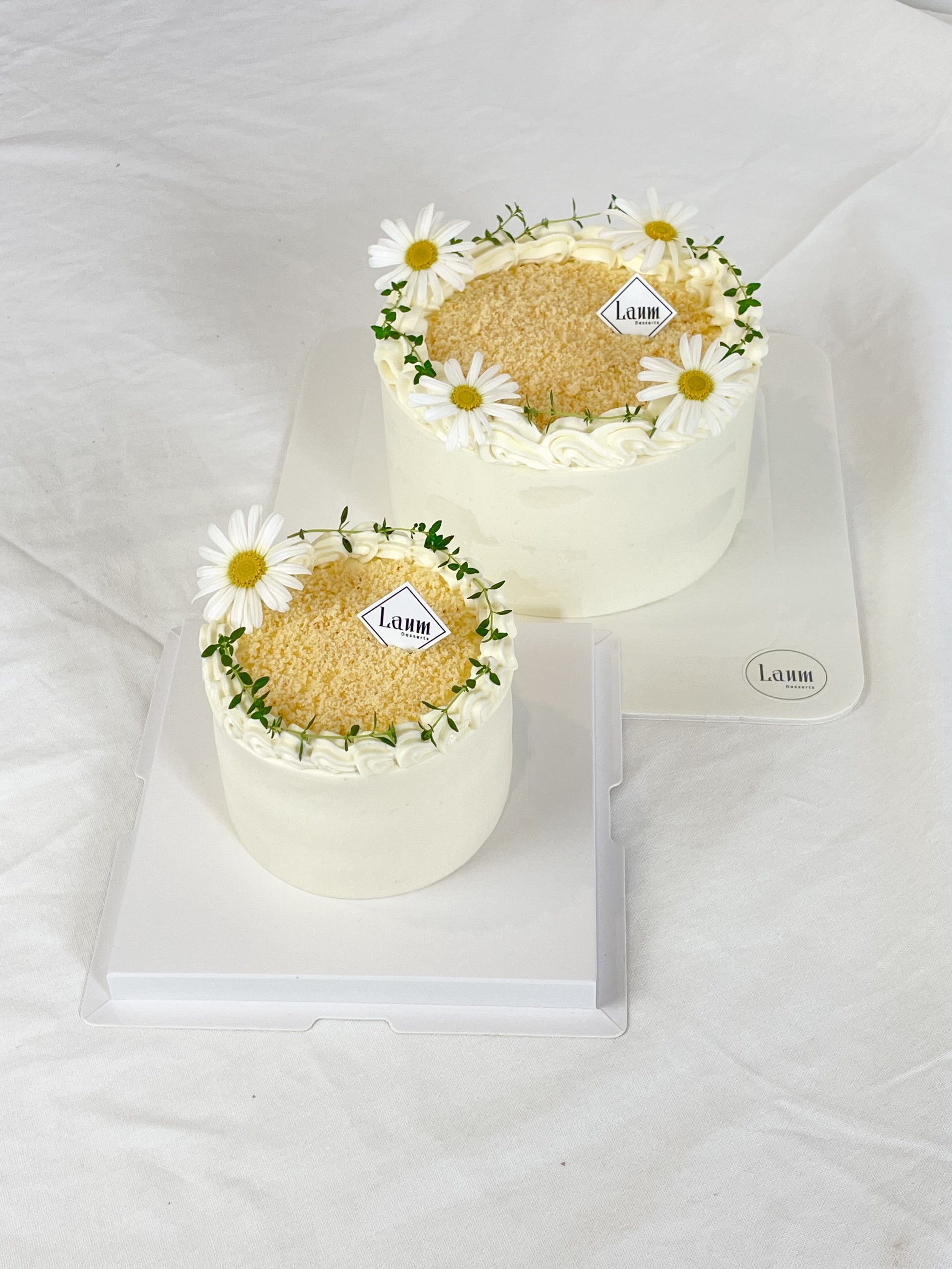 This classic Korean styled sweet potato cake is baked with rice & grain based soft sponge layered with creamy sweet potato filling and fresh whipped cream.